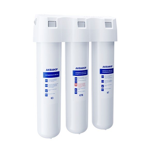 Обратноосмотические фильтры используются для абсолютной защиты от накипи, т.к. полностью устраняют соли жесткости из воды.нетЧисло ступеней очисткиКартриджи последовательно очищают воду и от видимых примесей, и от растворенных. Первый картридж задерживает более крупные частицы, а каждый последующий - более мелкие. Чем больше ступеней - тем лучше фильтр очистит воду: поймает более мелкие видимые частицы ржавчины, песка и ила, успеет захватить из воды максимум растворенных примесей - хлора, нитратов, тяжелых металлов и других.4МинерализацияПроисходит после финишной очистки воды. Необходима прежде всего в фильтре обратного осмоса, поскольку такой фильтр полностью устраняет из воды все примеси, в том числе минералы. Минералы добавляются в оптимальной концентрации - для пользы и привычного вкуса воды.нетПостфильтрацияФинальный этап очистки воды: картриджи постфильтрации удаляют самые мелкие механические частицы и кондиционируют воду, придавая ей более приятный вкус.нетНакопительная емкостьОбычно нужна в фильтрах обратного осмоса. Глубокая фильтрация требует времени. Чтобы Вам не приходилось ждать, пока вода наберется в чайник или кастрюлю, почти во всех моделях используется накопительный бак для чистой воды или другая емкость. В стандартном фильтре обратного осмоса под мойку воды в баке достаточно для семьи из 5-6 человек.нетФильтрующий модуль в комплектедаОтдельный краннетДавление в водопроводе не более, атмМаксимальное давление воды на входе в систему, при котором возможна стабильная работа фильтра.6,5Ширина, смОбратите внимание на габариты фильтра, и измерьте, сколько свободного пространства в предполагаемом месте установки.26,0Глубина, смОбратите внимание на габариты фильтра, и измерьте, сколько свободного пространства в предполагаемом месте установки.9,0Защита корпуса от гидроударовдаИсходная водаЖесткая вода – вода с избытком минеральных солей. От нее появляется накипь в чайнике, известковый налет на сантехнике и разводы на посуде. Мягкая вода – та, в которой мало минеральных солей. Нет накипи в чайнике и разводов на посуде. Фильтры для мутной воды и фильтры от ржавчины, как правило, имеют несколько стадий очистки и дополнительный полипропиленовый картридж. Он задерживает механические частицы ила, песка и ржавчины и защищает картриджи более глубокой очистки.мягкаяУстраняет мутностьМутность водопроводной воды может говорить о том, что в ней много мелких механических частиц. Важно, чтобы в фильтре был установлен дополнительные картридж механической предфильтрации (полипропиленовый) - он продлит жизнь остальным картриджам более тонкой очистки.даУстраняет ржавчину, бурый осадокЛюбой фильтр под мойку удалит из воды крупные и мелкие частицы ржавчины. Некоторые фильтры имеют повышенный ресурс по железу: они дольше служат в такой воде, поскольку лучше подходят для удаления из воды железа и механических частиц ржавчины.даЗащита от бактерийВсе проточные фильтры в той или иной степени защищают от бактерий. Например, добавление серебра препятствует их размножению. Это стандартная степень защиты. Если в семье есть дети, пожилые люди или аллергики, воду рекомендуется обеззараживать, то есть полностью удалять микроорганизмы. Повышенную защиту от бактерий дают фильтры с половолоконной мембраной. Это пучок труб