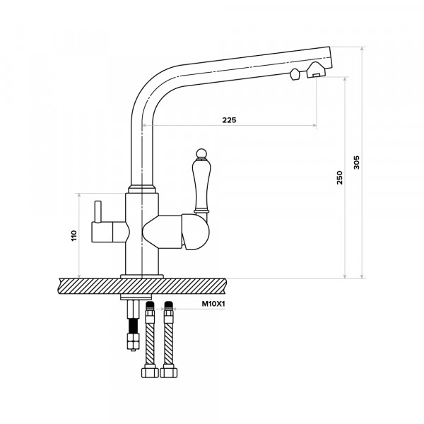 Габариты305 х 225 ммВысота излива250 ммВынос излива225 ммВыдвижной изливНет