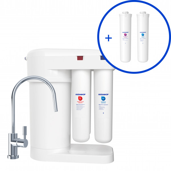 Обратноосмотические фильтры используются для абсолютной защиты от накипи, т.к. полностью устраняют соли жесткости из воды.даЧисло ступеней очисткиКартриджи последовательно очищают воду и от видимых примесей, и от растворенных. Первый картридж задерживает более крупные частицы, а каждый последующий - более мелкие. Чем больше ступеней - тем лучше фильтр очистит воду: поймает более мелкие видимые частицы ржавчины, песка и ила, успеет захватить из воды максимум растворенных примесей - хлора, нитратов, тяжелых металлов и других.4МинерализацияПроисходит после финишной очистки воды. Необходима прежде всего в фильтре обратного осмоса, поскольку такой фильтр полностью устраняет из воды все примеси, в том числе минералы. Минералы добавляются в оптимальной концентрации - для пользы и привычного вкуса воды.даПостфильтрацияФинальный этап очистки воды: картриджи постфильтрации удаляют самые мелкие механические частицы и кондиционируют воду, придавая ей более приятный вкус.даНакопительная емкостьОбычно нужна в фильтрах обратного осмоса. Глубокая фильтрация требует времени. Чтобы Вам не приходилось ждать, пока вода наберется в чайник или кастрюлю, почти во всех моделях используется накопительный бак для чистой воды или другая емкость. В стандартном фильтре обратного осмоса под мойку воды в баке достаточно для семьи из 5-6 человек.даФильтрующий модуль в комплектедаОтдельный крандаДавление в водопроводе не более, атмМаксимальное давление воды на входе в систему, при котором возможна стабильная работа фильтра.6,5Ширина, смОбратите внимание на габариты фильтра, и измерьте, сколько свободного пространства в предполагаемом месте установки.37,1Глубина, смОбратите внимание на габариты фильтра, и измерьте, сколько свободного пространства в предполагаемом месте установки.19,0Защита корпуса от гидроударовдаИсходная водаЖесткая вода – вода с избытком минеральных солей. От нее появляется накипь в чайнике, известковый налет на сантехнике и разводы на посуде. Мягкая вода – та, в которой мало минеральных солей. Нет накипи в чайнике и разводов на посуде. Фильтры для мутной воды и фильтры от ржавчины, как правило, имеют несколько стадий очистки и дополнительный полипропиленовый картридж. Он задерживает механические частицы ила, песка и ржавчины и защищает картриджи более глубокой очистки.любаяУстраняет мутностьМутность водопроводной воды может говорить о том, что в ней много мелких механических частиц. Важно, чтобы в фильтре был установлен дополнительные картридж механической предфильтрации (полипропиленовый) - он продлит жизнь остальным картриджам более тонкой очистки.даУстраняет ржавчину, бурый осадокЛюбой фильтр под мойку удалит из воды крупные и мелкие частицы ржавчины. Некоторые фильтры имеют повышенный ресурс по железу: они дольше служат в такой воде, поскольку лучше подходят для удаления из воды железа и механических частиц ржавчины.даЗащита от бактерийВсе проточные фильтры в той или иной степени защищают от бактерий. Например, добавление серебра препятствует их размножению. Это стандартная степень защиты. Если в семье есть дети, пожилые люди или аллергики, воду рекомендуется обеззараживать, то есть полностью удалять микроорганизмы. Повышенную защиту от бактерий дают фильтры с половолоконной мембраной. Это пучок трубок с по