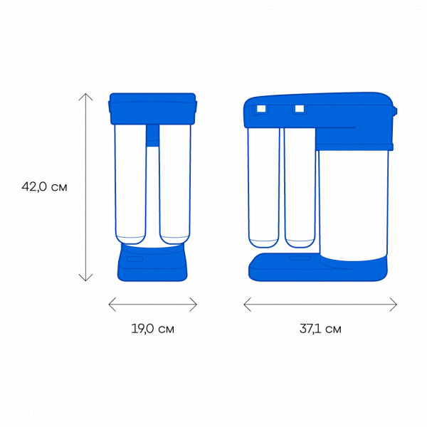 Обратноосмотические фильтры используются для абсолютной защиты от накипи, т.к. полностью устраняют соли жесткости из воды.даЧисло ступеней очисткиКартриджи последовательно очищают воду и от видимых примесей, и от растворенных. Первый картридж задерживает более крупные частицы, а каждый последующий - более мелкие. Чем больше ступеней - тем лучше фильтр очистит воду: поймает более мелкие видимые частицы ржавчины, песка и ила, успеет захватить из воды максимум растворенных примесей - хлора, нитратов, тяжелых металлов и других.4МинерализацияПроисходит после финишной очистки воды. Необходима прежде всего в фильтре обратного осмоса, поскольку такой фильтр полностью устраняет из воды все примеси, в том числе минералы. Минералы добавляются в оптимальной концентрации - для пользы и привычного вкуса воды.даПостфильтрацияФинальный этап очистки воды: картриджи постфильтрации удаляют самые мелкие механические частицы и кондиционируют воду, придавая ей более приятный вкус.даНакопительная емкостьОбычно нужна в фильтрах обратного осмоса. Глубокая фильтрация требует времени. Чтобы Вам не приходилось ждать, пока вода наберется в чайник или кастрюлю, почти во всех моделях используется накопительный бак для чистой воды или другая емкость. В стандартном фильтре обратного осмоса под мойку воды в баке достаточно для семьи из 5-6 человек.даФильтрующий модуль в комплектедаОтдельный крандаДавление в водопроводе не более, атмМаксимальное давление воды на входе в систему, при котором возможна стабильная работа фильтра.6,5Ширина, смОбратите внимание на габариты фильтра, и измерьте, сколько свободного пространства в предполагаемом месте установки.37,1Глубина, смОбратите внимание на габариты фильтра, и измерьте, сколько свободного пространства в предполагаемом месте установки.19,0Защита корпуса от гидроударовдаИсходная водаЖесткая вода – вода с избытком минеральных солей. От нее появляется накипь в чайнике, известковый налет на сантехнике и разводы на посуде. Мягкая вода – та, в которой мало минеральных солей. Нет накипи в чайнике и разводов на посуде. Фильтры для мутной воды и фильтры от ржавчины, как правило, имеют несколько стадий очистки и дополнительный полипропиленовый картридж. Он задерживает механические частицы ила, песка и ржавчины и защищает картриджи более глубокой очистки.любаяУстраняет мутностьМутность водопроводной воды может говорить о том, что в ней много мелких механических частиц. Важно, чтобы в фильтре был установлен дополнительные картридж механической предфильтрации (полипропиленовый) - он продлит жизнь остальным картриджам более тонкой очистки.даУстраняет ржавчину, бурый осадокЛюбой фильтр под мойку удалит из воды крупные и мелкие частицы ржавчины. Некоторые фильтры имеют повышенный ресурс по железу: они дольше служат в такой воде, поскольку лучше подходят для удаления из воды железа и механических частиц ржавчины.даЗащита от бактерийВсе проточные фильтры в той или иной степени защищают от бактерий. Например, добавление серебра препятствует их размножению. Это стандартная степень защиты. Если в семье есть дети, пожилые люди или аллергики, воду рекомендуется обеззараживать, то есть полностью удалять микроорганизмы. Повышенную защиту от бактерий дают фильтры с половолоконной мембраной. Это пучок трубок с по