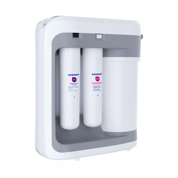 О замене картриджей напомнит звуковая и цветовая индикация ресурса каждого модуля. Встроенный насос обеспечивает стабильную работу даже при низком давлении от 0,9 атм.