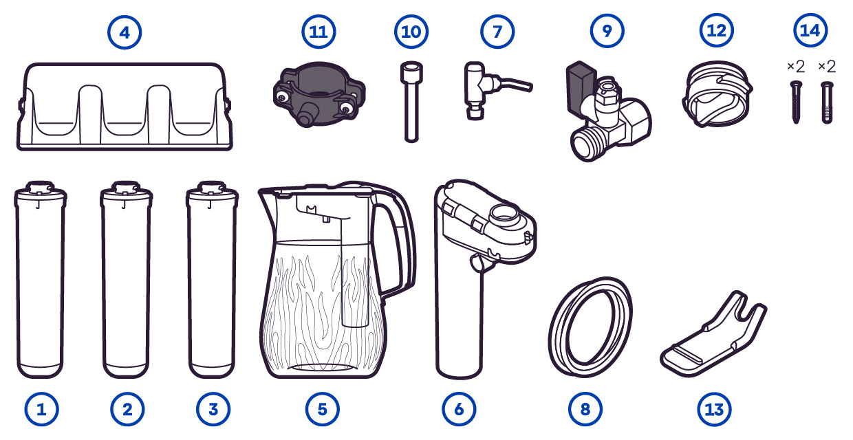 Обратноосмотические фильтры используются для абсолютной защиты от накипи, т.к. полностью устраняют соли жесткости из воды.даЧисло ступеней очисткиКартриджи последовательно очищают воду и от видимых примесей, и от растворенных. Первый картридж задерживает более крупные частицы, а каждый последующий - более мелкие. Чем больше ступеней - тем лучше фильтр очистит воду: поймает более мелкие видимые частицы ржавчины, песка и ила, успеет захватить из воды максимум растворенных примесей - хлора, нитратов, тяжелых металлов и других.4УмягчениеУдаление из воды солей жесткости (солей кальция и магния, из-за которых образуется накипь в чайнике, белые пятна на посуде, известковый налет). Фильтры обратного осмоса абсолютно умягчают воду с любой концентрацией солей (то есть удаляют соли жесткости полностью). Проточные фильтры со специальными картриджами рекомендуются только для умягчения воды средней жесткости (той, в которой средняя концентрация солей кальция и магния - до 5 млэкв/литр).абсолютноеМинерализацияПроисходит после финишной очистки воды. Необходима прежде всего в фильтре обратного осмоса, поскольку такой фильтр полностью устраняет из воды все примеси, в том числе минералы. Минералы добавляются в оптимальной концентрации - для пользы и привычного вкуса воды.даНакопительная емкостьОбычно нужна в фильтрах обратного осмоса. Глубокая фильтрация требует времени. Чтобы Вам не приходилось ждать, пока вода наберется в чайник или кастрюлю, почти во всех моделях используется накопительный бак для чистой воды или другая емкость. В стандартном фильтре обратного осмоса под мойку воды в баке достаточно для семьи из 5-6 человек.даФильтрующий модуль в комплектедаОтдельный краннетДавление в водопроводе не менее, атм1,5Давление в водопроводе не более, атмМаксимальное давление воды на входе в систему, при котором возможна стабильная работа фильтра.6,5Ширина, смОбратите внимание на габариты фильтра, и измерьте, сколько свободного пространства в предполагаемом месте установки.28,0Глубина, смОбратите внимание на габариты фильтра, и измерьте, сколько свободного пространства в предполагаемом месте установки.10,5Исходная водаЖесткая вода – вода с избытком минеральных солей. От нее появляется накипь в чайнике, известковый налет на сантехнике и разводы на посуде. Мягкая вода – та, в которой мало минеральных солей. Нет накипи в чайнике и разводов на посуде. Фильтры для мутной воды и фильтры от ржавчины, как правило, имеют несколько стадий очистки и дополнительный полипропиленовый картридж. Он задерживает механические частицы ила, песка и ржавчины и защищает картриджи более глубокой очистки.жёсткаяУстраняет мутностьМутность водопроводной воды может говорить о том, что в ней много мелких механических частиц. Важно, чтобы в фильтре был установлен дополнительные картридж механической предфильтрации (полипропиленовый) - он продлит жизнь остальным картриджам более тонкой очистки.даУстраняет ржавчину, бурый осадокЛюбой фильтр под мойку удалит из воды крупные и мелкие частицы ржавчины. Некоторые фильтры имеют повышенный ресурс по железу: они дольше служат в такой воде, поскольку лучше подходят для удаления из воды железа и механических частиц ржавчины.даЗащита от бактерийВсе проточные фильтры в той или иной степени защищают от бактерий. Наприме